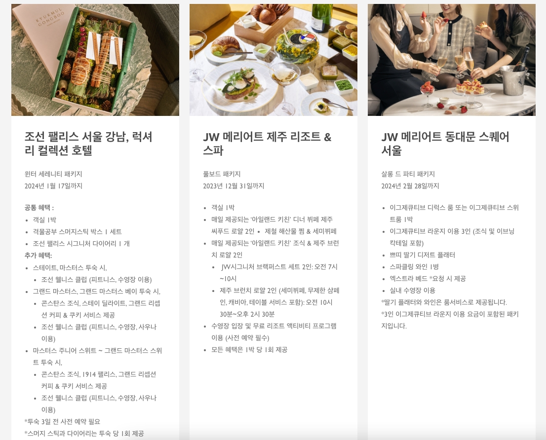 조선 팰리스 서울 강남, JW 메리어트 호텔 서울, 동대문, 대구 메리어트 호텔, 쉐라톤 그랜드 인천 호텔, 웨스틴 조선 서울 등등 메리어트 공식홈페이지 프로모션 혜택