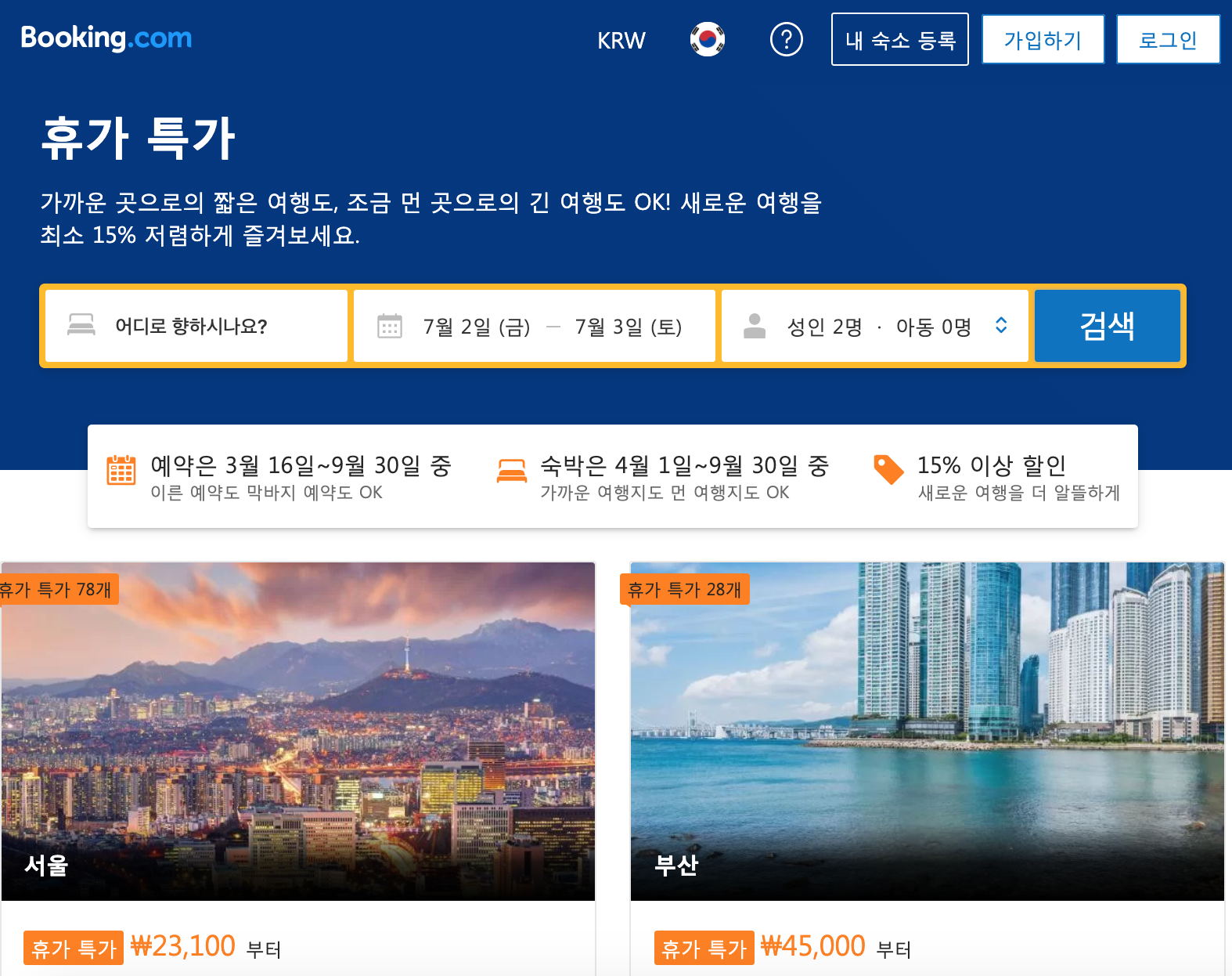 여름휴가 계획을 부킹닷컴 할인 숙박시설 특히~ 휴가 특가 프로모션 찬스 활용하기
