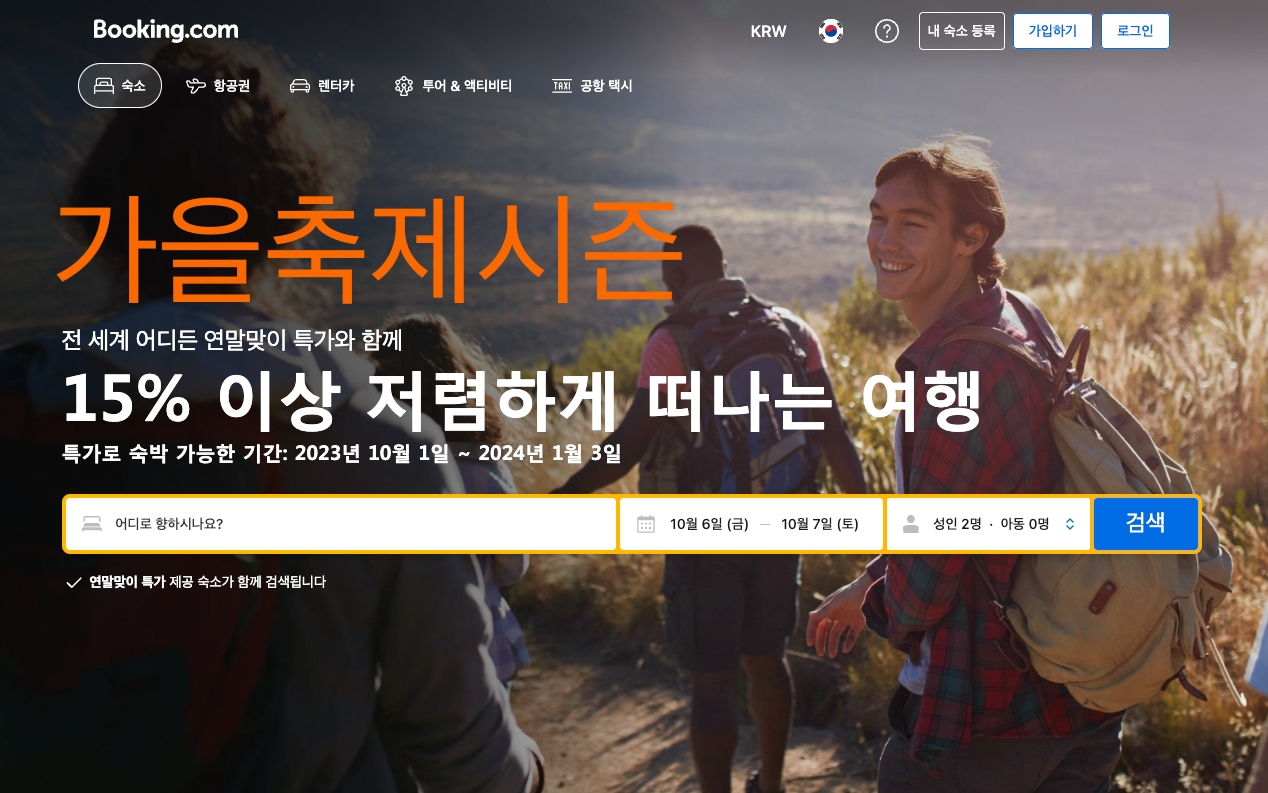 - 2023년 10월 - 11월 가을 단풍시즌 및 불꽃축제 호캉스 휴가특가 15% 할인 부킹닷컴 호텔 리조트 게스트하우스 연말특가 할인 더보기