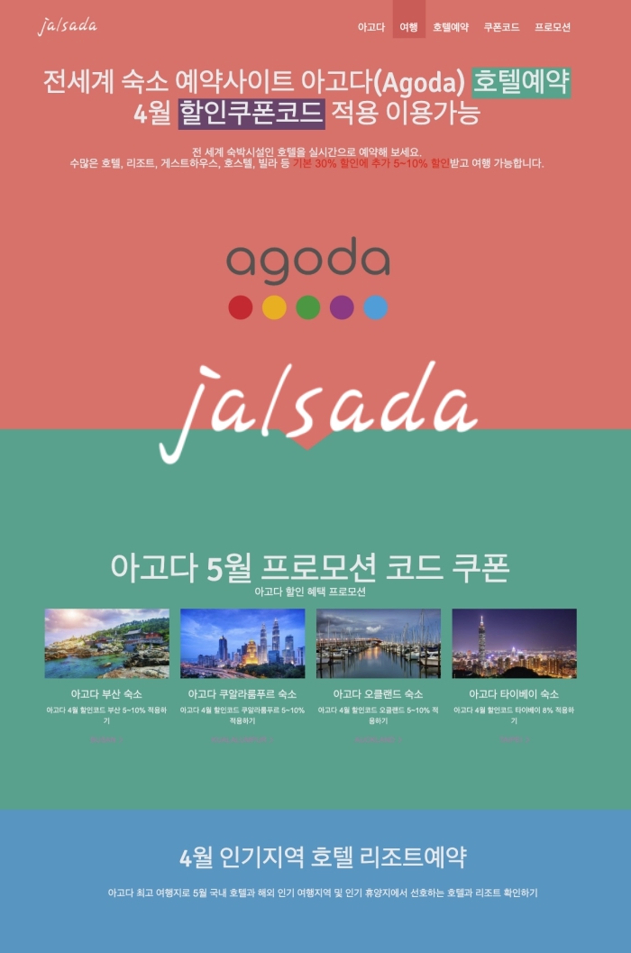 아고다 4월 할인코드 5월 국내 인기 휴양지 호텔 리조트예약 agoda