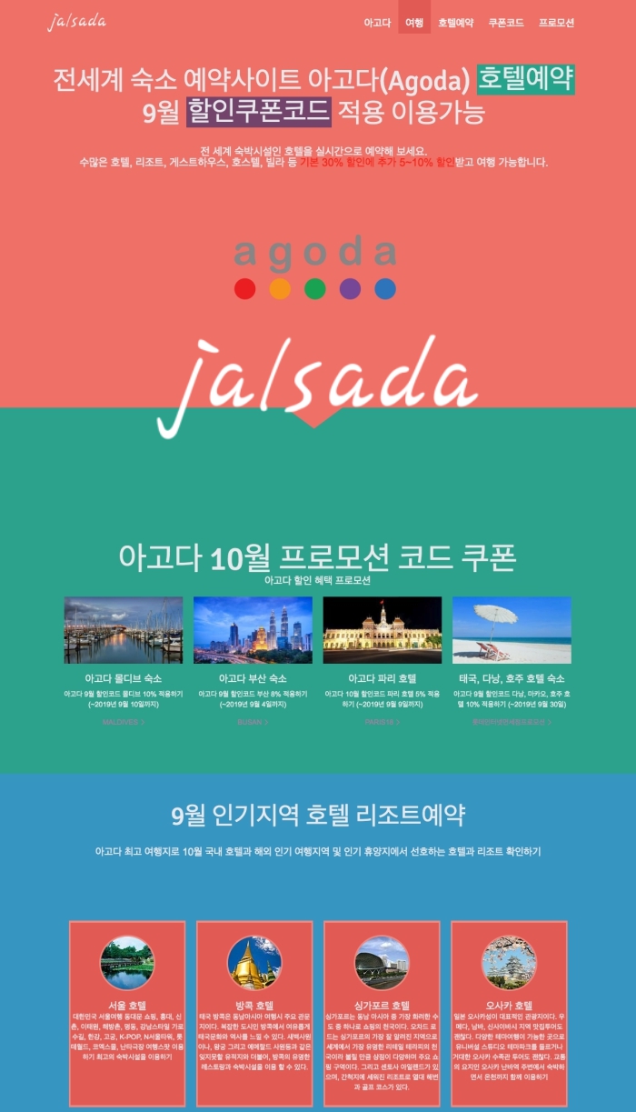 아고다 할인코드 9월 10월 신행 인기 휴양지 호텔 리조트예약 agoda