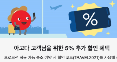 - 5% off TRAVEL2021 호텔만 예약시 5% 할인적용