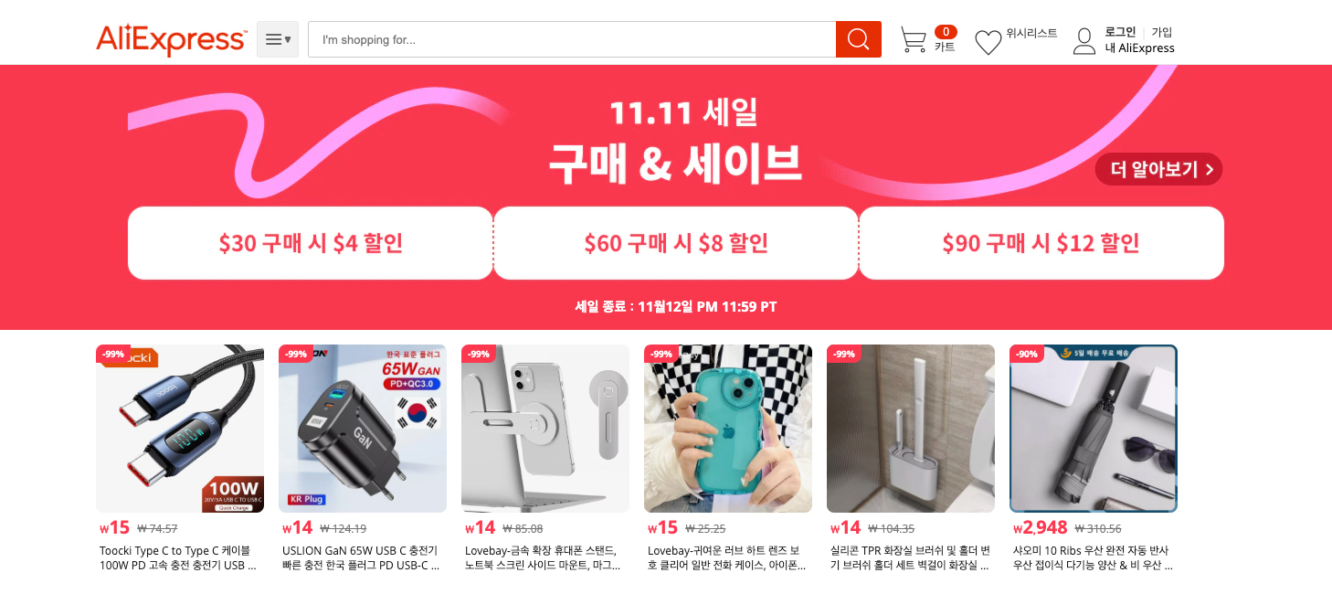 알리익스프레스 프로모션 : 11.11세일 광군절