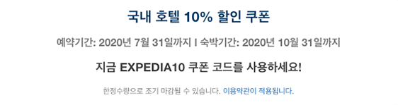 익스피디아 할인코드 7월 - 8월 국내 여름휴가 5~10% 호텔예약 적용