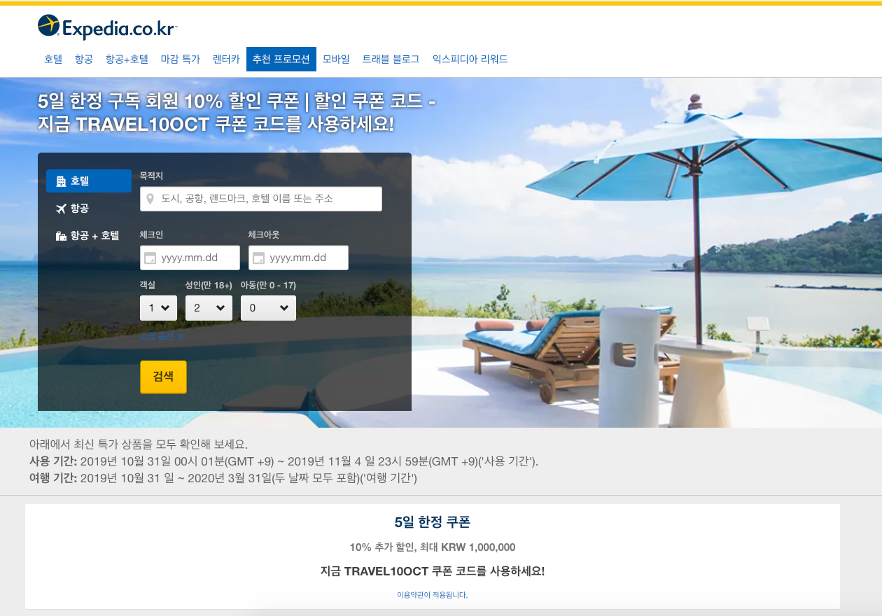 익스피디아 11월 할인코드 12월 5-10% 호텔쿠폰 2019