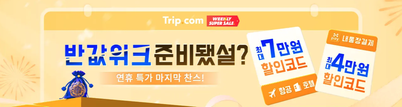 | 트립닷컴 1월 프로모션코드 2월 설날연휴 국내호텔 서울, 부산, 오사카, 후쿠오카 온천여행 호텔예약 (0) | 2024.01.03 |