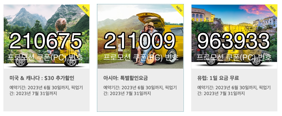 2023년 6월 ~ 7월 유럽, 미국 렌터카예약 할인쿠폰