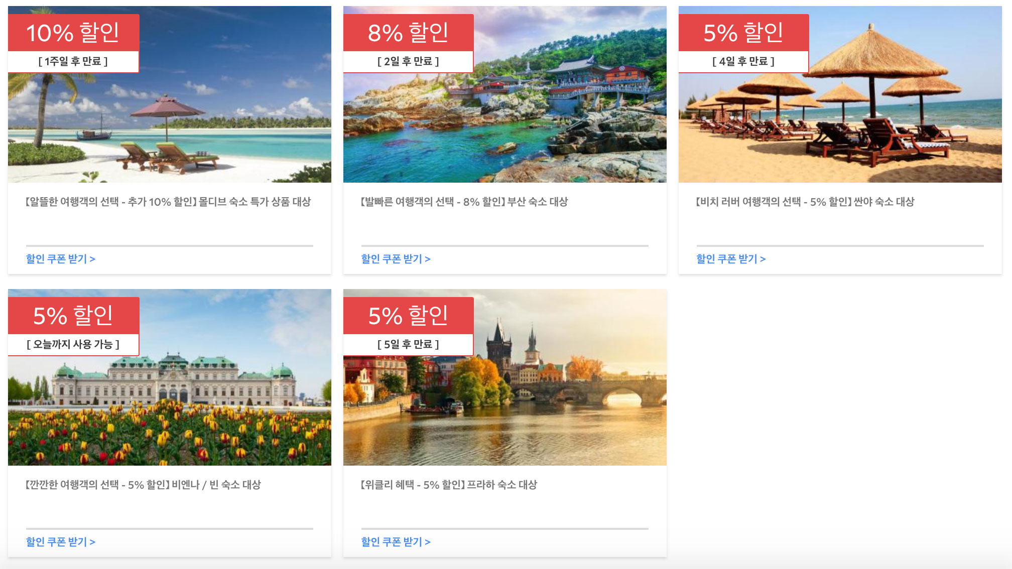 | 8월 - 9월 국내여행 여름휴가 호텔예약 익스피디아 할인코드 적용 (0) | 2020.08.03 |
