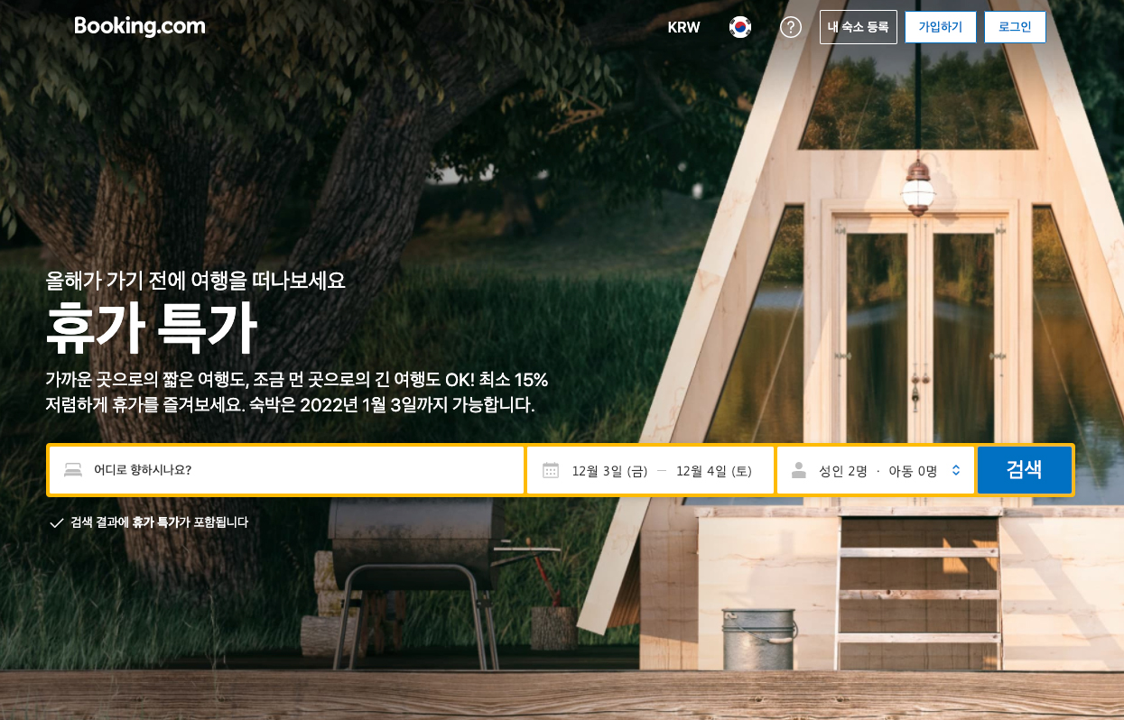 - 2021년 12월 크리스마스시즌 및 겨울방학 숙박시설 부킹닷컴 호텔 리조트 게스트하우스 특가 할인 더보기