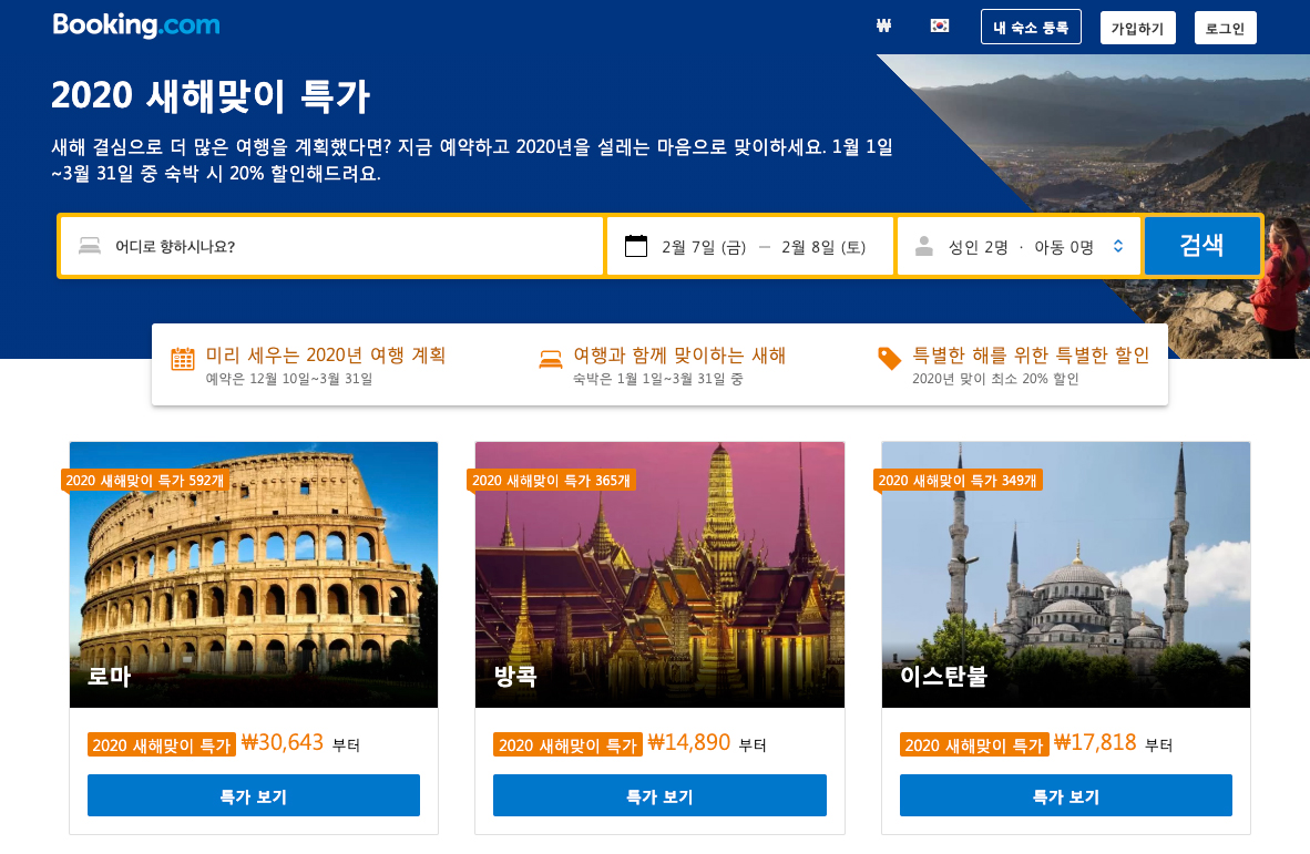 - 2020 새해시즌 봄시즌 5월 연휴 2월 여행 부킹닷컴 핫딜 호텔 리조트 게스트하우스 특가 할인 숙박시설 더보기
