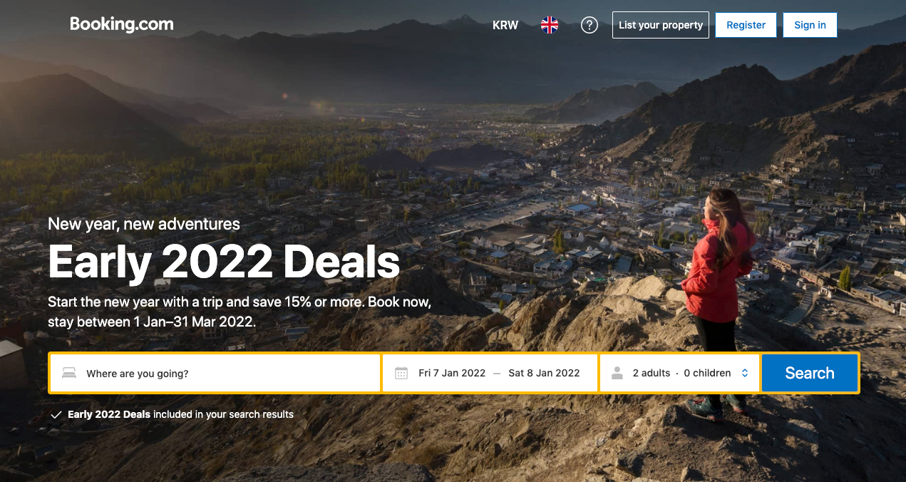 부킹닷컴 1월 프로모션 할인코드 Booking.com New year new Early 2022 Deals