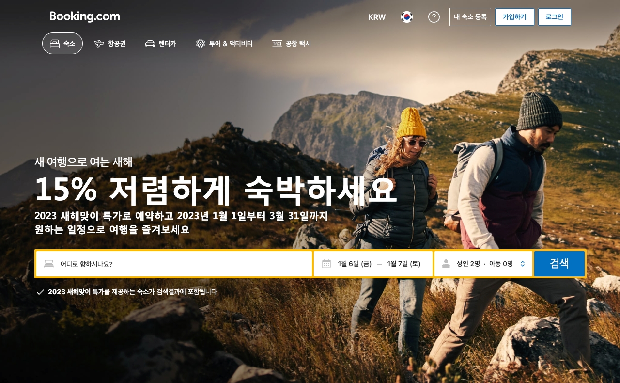 - 2023년 1월 커플 호캉스 휴가특가 15% 할인 부킹닷컴 호텔 리조트 게스트하우스 특가 할인 더보기