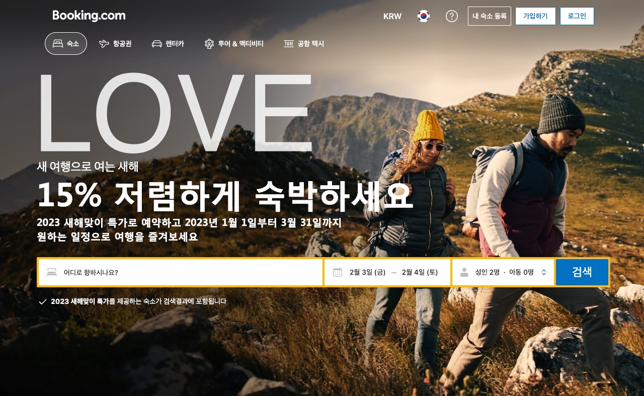 - 2023년 3월 커플 호캉스 휴가특가 15% 할인 부킹닷컴 호텔 리조트 게스트하우스 특가 할인 더보기