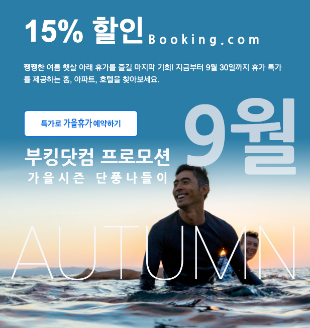 ▶ Booking.com PROMO Fall Vacation 부킹닷컴 9월 할인프로모션코드