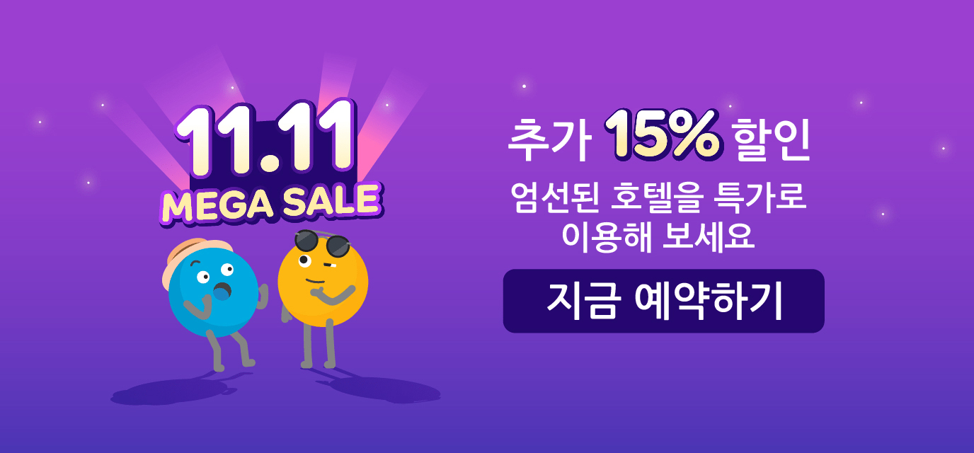 - 15% off MEGA 11.11 SALE 특가호텔 추가 15% 할인 예약