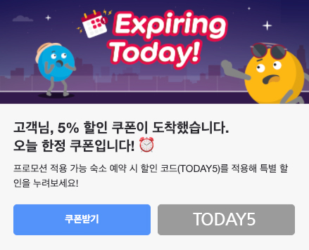 - 5% off TODAY5 호텔만 예약시 5% 할인적용