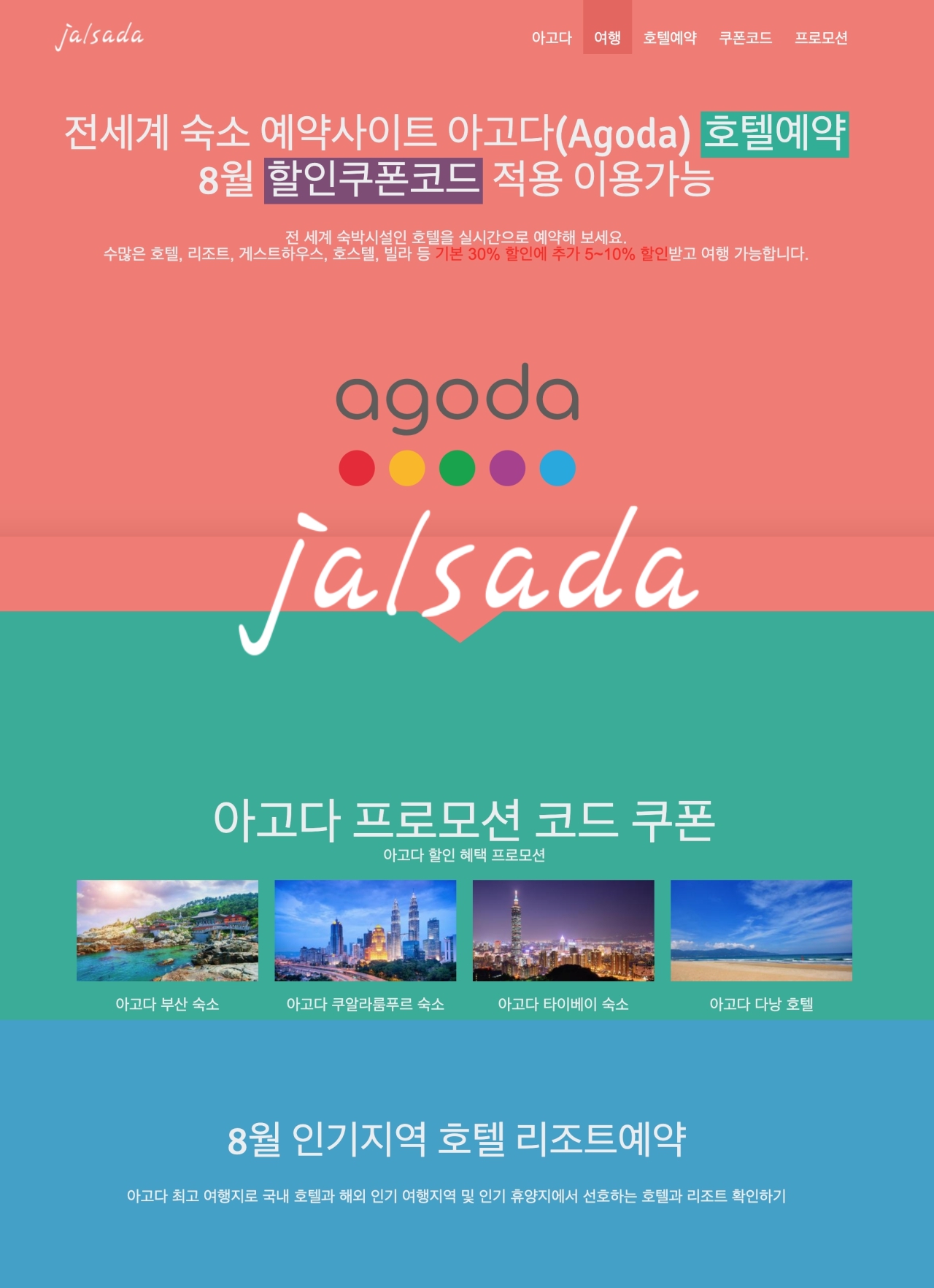 아고다 8월 할인코드 9월 프로모션 서울, 여수, 제주도, 경주, 부산 호텔예약