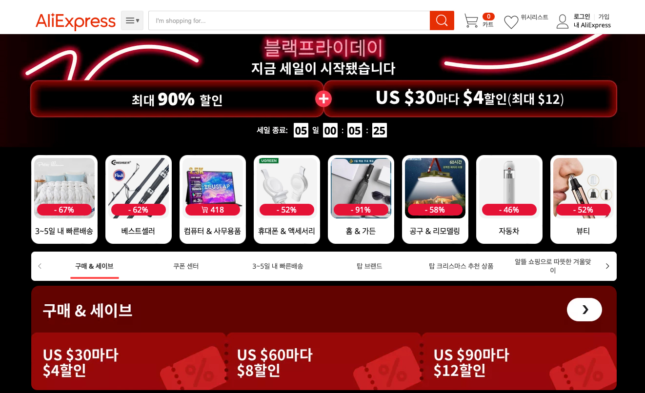 알리익스프레스 프로모션 : 블랙프라이데이 세일 BlackFriday