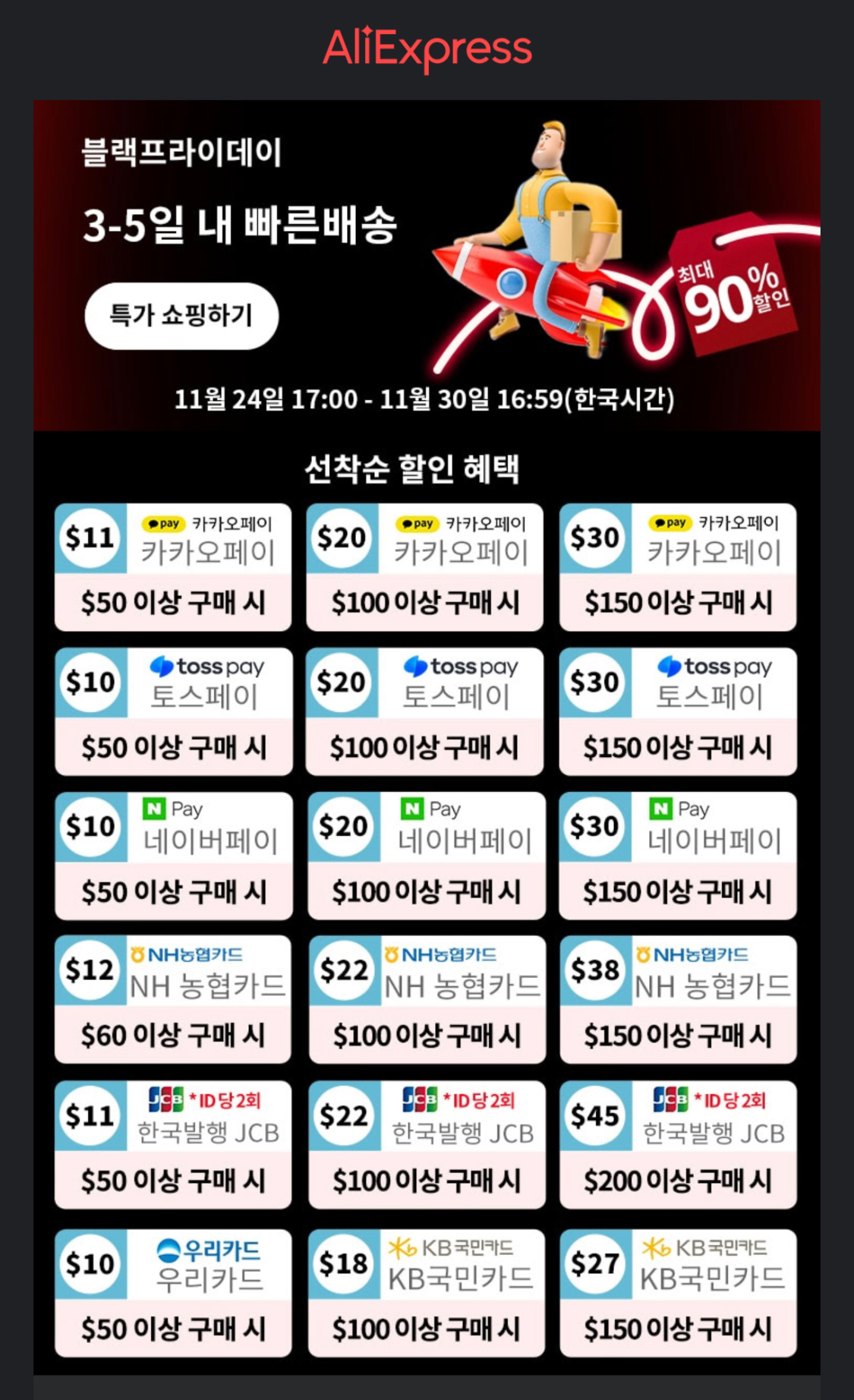 알리익스프레스 11월 할인프로모션코드 세일 블랙 프라이데이맞이하는 자세