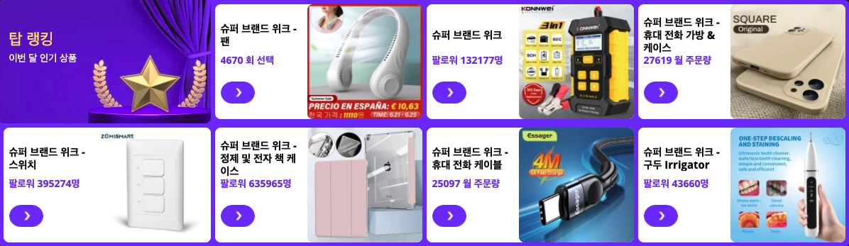 알리 탑 브랜드와 베스트셀러 한번에 인기 아이템까지~