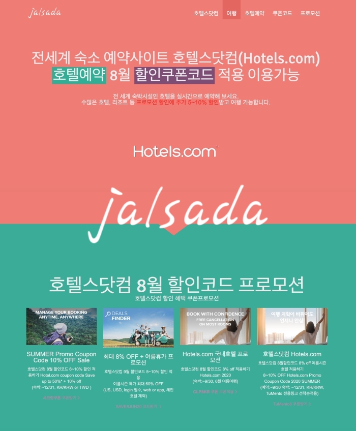 일단 국내버전은 원화로 호텔스닷컴 프로모션이 아니고 호텔 및 숙박시설 자체 할인가격 특가 활용하는 것도 방법입니다.