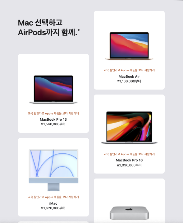 애플 공식홈페이지 프로모션 대학생 혜택 받기 Mac 또는 iPad 사면, Mac 또는 iPad 구입하고 AirPods까지 덤